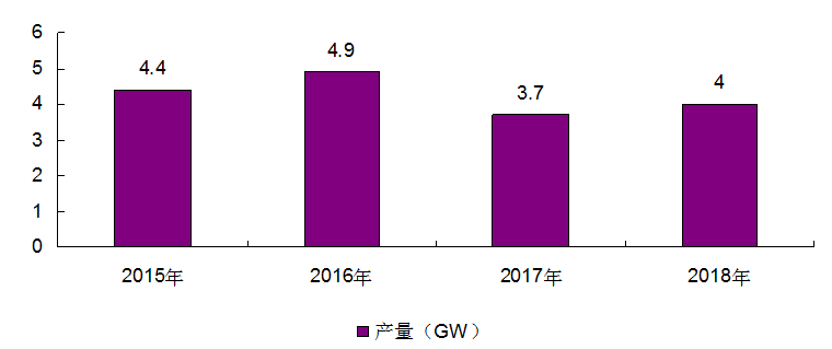 圖表 2015-2018年全球薄膜太陽能電池產(chǎn)量