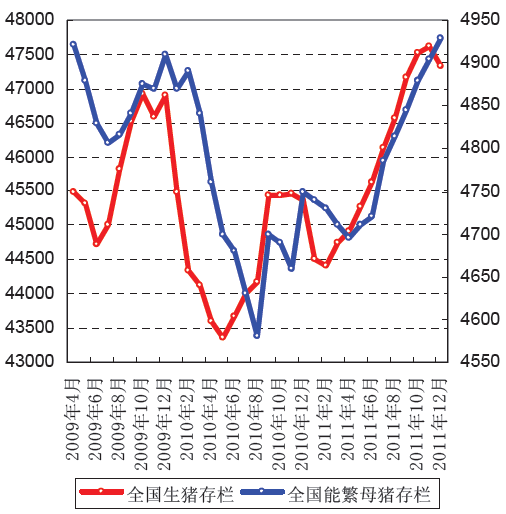 圖表 我國生豬和能繁母豬存欄數(shù)(萬頭)
