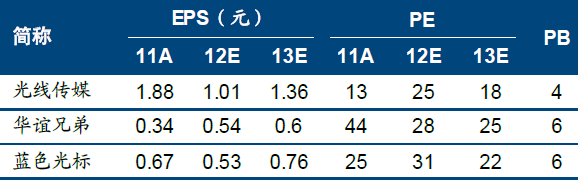 華誼兄弟下半年將上映的大制作包括《畫皮2》,《十二生肖》,《1942》等大制作電影,無論是投資還是主創(chuàng)團隊影響力均是業(yè)內(nèi)首屈一指!懂嬈2》在上映前已經(jīng)好評如潮,可見無論是影片本身的打磨還是映前的輿論宣傳華誼的功力依然是行業(yè)龍頭。除去傳統(tǒng)的內(nèi)容領域,華誼兄弟不斷布局渠道。內(nèi)容本質(zhì)上生命周期很短,即使輝煌如《阿甘正傳》《泰坦尼克》等作品也無法發(fā)揮跨越時空的價值。因此我們看好華誼兄弟在渠道合作方面的布局,不斷的利用每部作品精心的澆筑華誼兄弟這個品牌,并以華誼品牌為大平臺,形成最優(yōu)質(zhì)品牌聚集最優(yōu)質(zhì)人才,生產(chǎn)最優(yōu)質(zhì)作品的正反饋。
