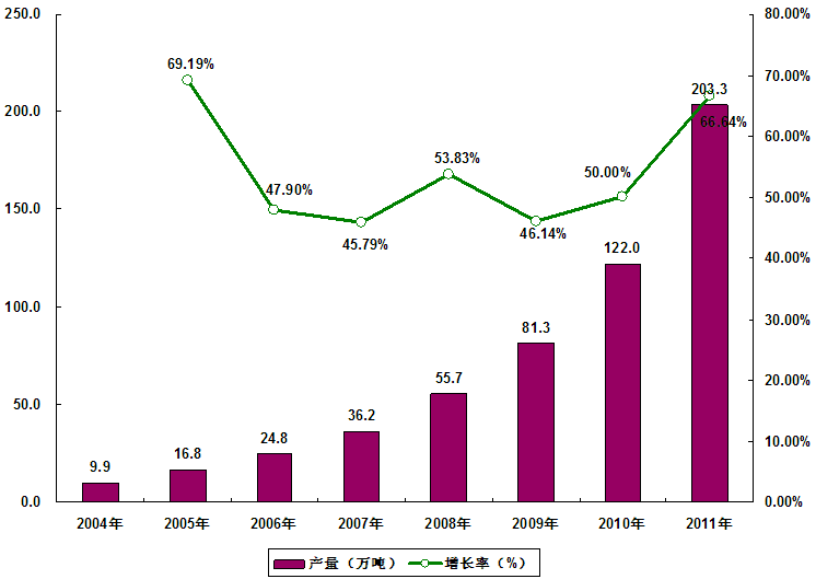 圖表 2007-2011年中國有機(jī)大米產(chǎn)量增長情況