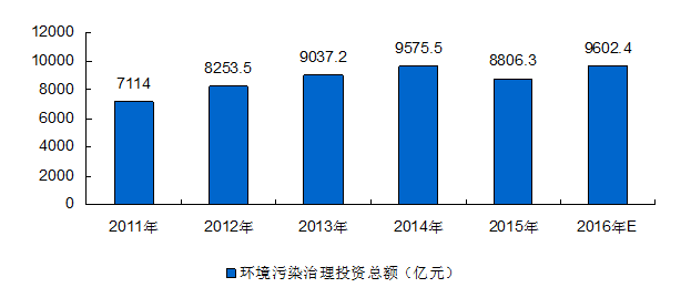 圖表 2010-2016年我國環(huán)保投資規(guī)模