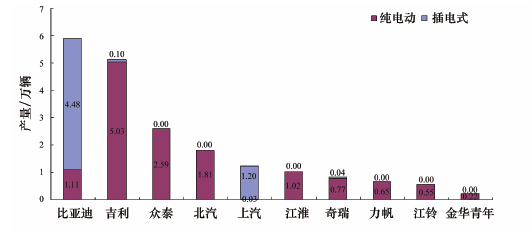 圖表 2015 年新能源乘用車產(chǎn)量前10 名企業(yè)