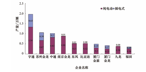 圖表 2015 年新能源客車產(chǎn)量前10 名企業(yè)
