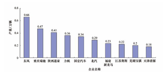 圖表 2015 年新能源專用車產(chǎn)量前10 名企業(yè)