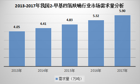 圖表 2013-2017年我國(guó)2-甲基四氫呋喃行業(yè)市場(chǎng)需求量分析