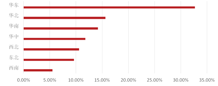 豆?jié){粉行業(yè)市場結(jié)構(gòu)中,擁有長三角經(jīng)濟圈的華東市場占比最多,該區(qū)域市場前景更為良好,競爭尤為激烈;華北、華南地區(qū)分列二、三位,京津、廣深等龍頭城市帶動周邊豆?jié){粉市場;華中以11.8%的市場占比培明第四,武漢、長沙等城市豆?jié){粉行業(yè)需求較大;西北、東北經(jīng)濟下滑,豆?jié){粉行業(yè)需求相對保守;西南經(jīng)濟欠發(fā)達(dá),豆?jié){粉行業(yè)需求較少。
