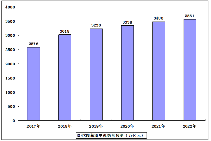 2017-2022年我國(guó)4K超高清電視銷量預(yù)測(cè)
