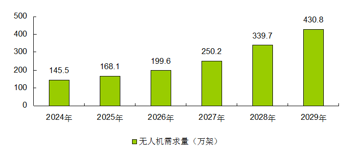 預(yù)計(jì)到2029年我國國內(nèi)無人機(jī)需求量將達(dá)到430.8萬架,行業(yè)復(fù)合增長率為22.63%。