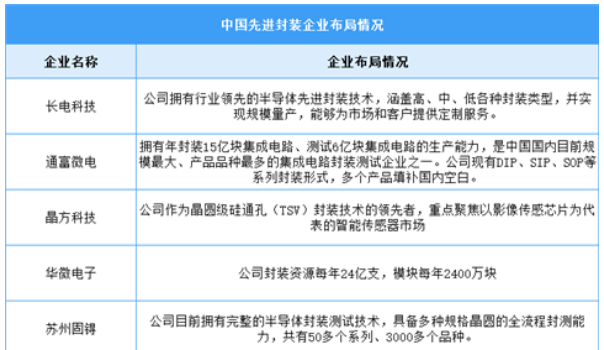 隨著先進封裝市場越來越受到重視,越來越多國內(nèi)企業(yè)開始布局先進封裝領(lǐng)域。主要包括長電科技、通富微電、晶方科技、華微電子、蘇州固锝、華天科技、氣派科技、太極實業(yè)、甬矽電子。