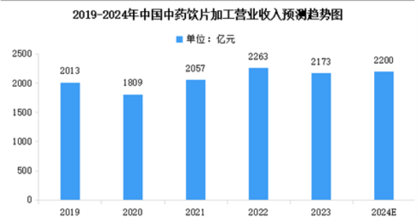 中藥飲片是中藥材經(jīng)過(guò)按中醫(yī)藥理論、中藥炮制方法,經(jīng)過(guò)加工炮制后的,可直接用于中醫(yī)臨床的中藥。中藥飲片是中藥產(chǎn)業(yè)三大支柱之一,上承中藥材,下接中成藥、提取物、保健品和中醫(yī)臨床,處于整個(gè)中藥產(chǎn)業(yè)鏈的核心位置。2023年中藥工業(yè)營(yíng)業(yè)收入達(dá)到7095.2億元,其中中藥飲片加工營(yíng)業(yè)收入達(dá)2173億元。2024年中國(guó)中藥飲片加工營(yíng)業(yè)收入將達(dá)到2200億元。