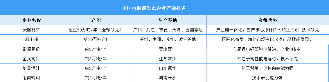 中國電解液行業(yè)近年來發(fā)展迅速,受益于新能源汽車、儲能等領(lǐng)域的快速增長,電解液市場需求持續(xù)攀升。行業(yè)內(nèi)企業(yè)通過技術(shù)研發(fā)、產(chǎn)能擴(kuò)張和產(chǎn)業(yè)鏈整合,形成了多元化的競爭格局。天賜材料、新宙邦、國泰華榮等頭部企業(yè)憑借技術(shù)、規(guī)模和客戶資源優(yōu)勢,占據(jù)了大部分市場份額。