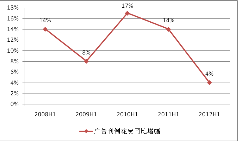 圖表 2008-2012 年上半年同期廣告刊例花費同比增幅