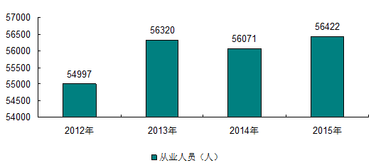 圖表 2012-2015年我國公共圖書館從業(yè)人員規(guī)模