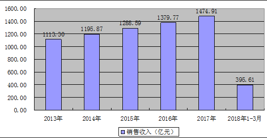 圖表 2013-2018年3月中國洋酒行業(yè)銷售收入分析