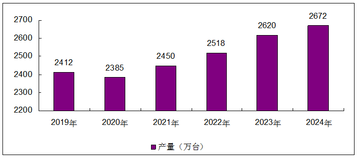 圖表 2019-2024年我國(guó)冷藏柜產(chǎn)量規(guī)模