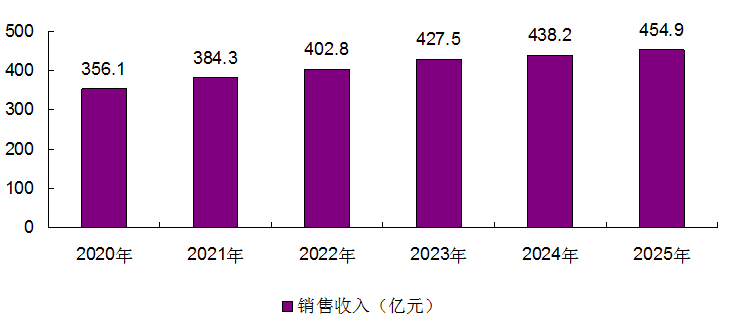 預(yù)計(jì)受疫情影響2020年我國(guó)白銀銷(xiāo)售收入將下滑至356.1億元,2021年開(kāi)始恢復(fù)增長(zhǎng)到2025年銷(xiāo)售收入達(dá)到454.9億元。