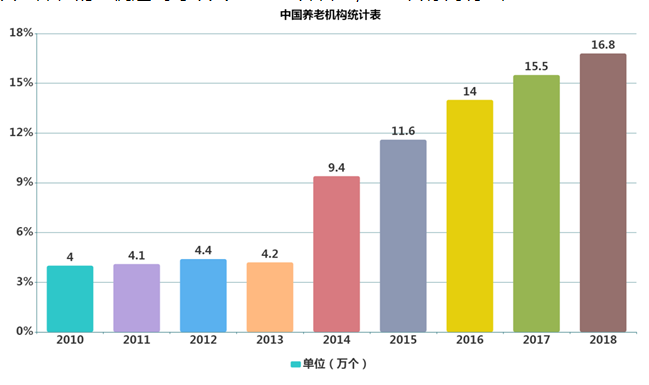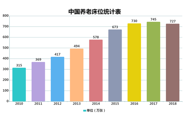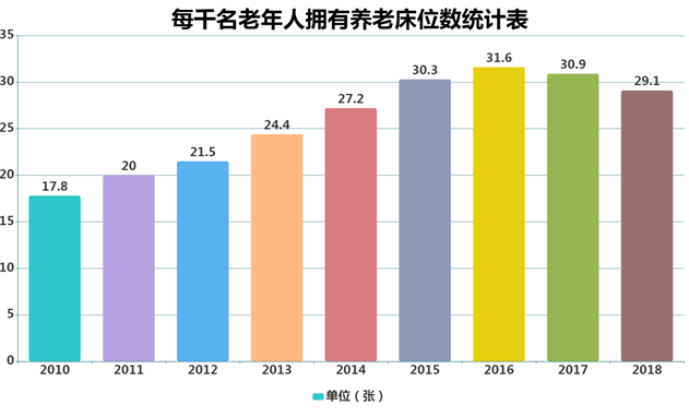 當(dāng)前我國(guó)養(yǎng)老產(chǎn)業(yè)的供給量遠(yuǎn)不及需求量和新增老年人口的速度。2018年年底,全國(guó)共有養(yǎng)老機(jī)構(gòu)16.8萬家,養(yǎng)老床位727萬張,每千名老人擁有養(yǎng)老床位數(shù)29.1張。近幾年來,老年床位數(shù)量從2011年的369萬張?jiān)黾拥?018年的700萬張,老齡人口的數(shù)量以每年3%-5%的速度增長(zhǎng),到2015年,每千老年人擁有的老年床位仍約為30張。目前,我國(guó)養(yǎng)老服務(wù)機(jī)構(gòu)床位發(fā)展的目標(biāo)是老年人口與床位的比例達(dá)到每千人35-40個(gè)床位,與此目標(biāo)尚有一定差距。