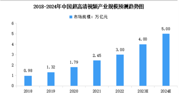 當前,超高清視頻與5G、人工智能、虛擬現(xiàn)實等新一代信息技術(shù)深度融合創(chuàng)新發(fā)展,催生大量新場景、新應用、新模式,成為千行百業(yè)數(shù)字化轉(zhuǎn)型的重要賦能力量。截至2022年年底,我國超高清視頻產(chǎn)業(yè)規(guī)模約3萬億元。到2023年中國超高清視頻產(chǎn)業(yè)規(guī)模將達到4萬億元,2025年將進一步增至5萬億元。