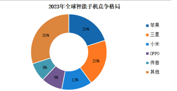 蘋果首次略超三星,成為2023年度出貨量最高的廠商,不過兩者的市場(chǎng)份額均為20%。小米、OPPO和傳音分別占據(jù)13%、9%和8%的市場(chǎng)份額。