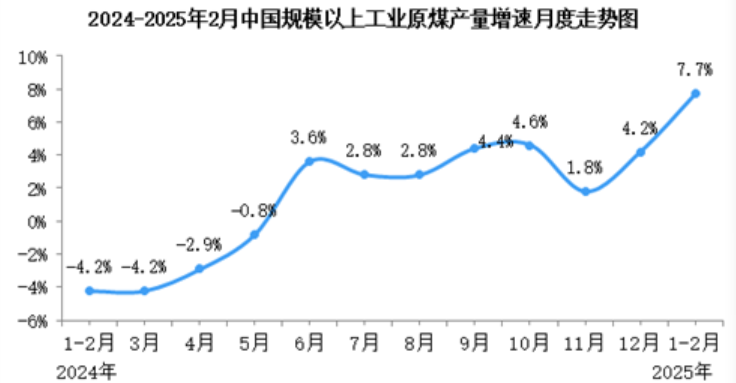 原煤生產(chǎn)增速加快。1—2月份,規(guī)上工業(yè)原煤產(chǎn)量7.7億噸,同比增長7.7%,增速比上年12月份加快3.5個百分點;日均產(chǎn)量1297萬噸。