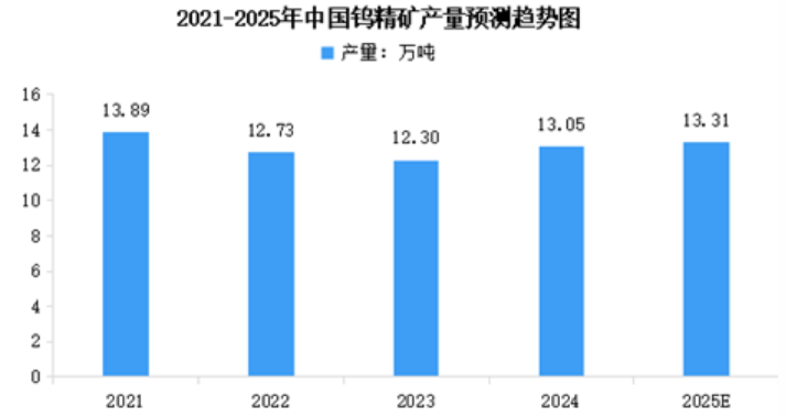 鎢精礦是從礦山開(kāi)采得到的鎢礦石,經(jīng)過(guò)選礦處理后得到的含鎢量較高的精礦,是鎢冶煉的原料。中國(guó)是世界上鎢精礦產(chǎn)量最大的國(guó)家, 2024年中國(guó)鎢精礦產(chǎn)量13.05萬(wàn)噸,同比增長(zhǎng)1.95%。2025年中國(guó)鎢精礦產(chǎn)量將達(dá)到13.31萬(wàn)噸。