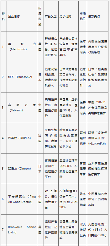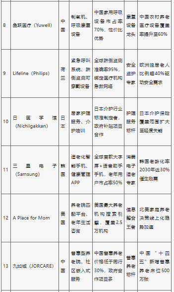 全球銀發(fā)經(jīng)濟(jì)市場(chǎng)細(xì)分領(lǐng)域眾多,企業(yè)眾多。不同企業(yè)在不同領(lǐng)域具有各自的優(yōu)勢(shì)。在醫(yī)療設(shè)備領(lǐng)域,強(qiáng)生、美敦力等國(guó)際巨頭占據(jù)主導(dǎo)地位;在養(yǎng)老地產(chǎn)方面,國(guó)內(nèi)外也有一些知名企業(yè)專(zhuān)注于開(kāi)發(fā)和運(yùn)營(yíng)適老化的居住設(shè)施。此外,隨著科技的發(fā)展和老年人需求的變化,一些創(chuàng)新型企業(yè)開(kāi)始涉足銀發(fā)經(jīng)濟(jì)領(lǐng)域,通過(guò)運(yùn)用新技術(shù)、新模式,為老年人提供更加便捷、個(gè)性化的產(chǎn)品和服務(wù)。