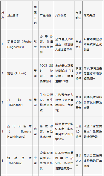 全球體外診斷行業(yè)競(jìng)爭(zhēng)激烈,大型跨國醫(yī)療集團(tuán)占據(jù)龍頭地位。在全球體外檢測(cè)市場(chǎng)中,美國、歐洲、中國、日本是較為發(fā)達(dá)地區(qū),占據(jù)大部分市場(chǎng)份額,其相關(guān)企業(yè)具有較大發(fā)展?jié)摿Α?/P>