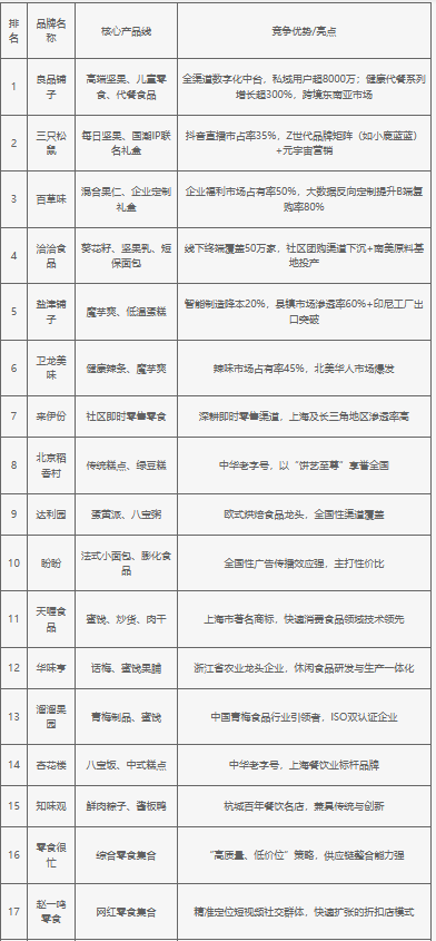 休閑食品種類繁多,包括糖果巧克力和蜜餞、種子及堅(jiān)果炒貨、香脆休閑食品、面包蛋糕和糕點(diǎn)、肉制品及水產(chǎn)動(dòng)物制品、餅干、調(diào)味面制品、休閑蔬菜制品、休閑豆干制品等。中國休閑食品行業(yè)正處于快速發(fā)展階段,市場規(guī)模持續(xù)擴(kuò)大,消費(fèi)需求多樣化,競爭格局分散但集中度有提升空間。頭部企業(yè)如良品鋪?zhàn)、三只松鼠等在市場中占?jù)重要地位,未來行業(yè)將向健康化、功能化方向發(fā)展。