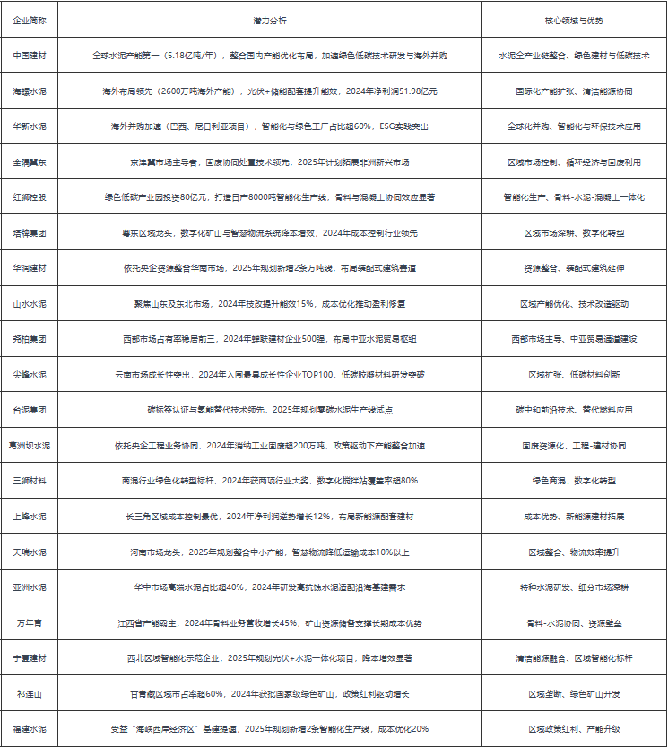 2025年中國水泥建材行業(yè)企業(yè)潛力排名