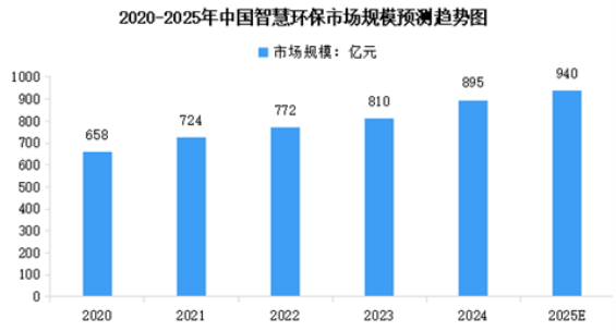 隨著環(huán)保意識(shí)的提高和技術(shù)的不斷創(chuàng)新,智慧環(huán)保市場(chǎng)需求持續(xù)增長(zhǎng)。特別是在“雙碳”背景下,中國(guó)環(huán)保產(chǎn)業(yè)將進(jìn)一步向數(shù)字化、智能化發(fā)展,行業(yè)規(guī)模不斷擴(kuò)大。2024年中國(guó)智慧環(huán)保市場(chǎng)規(guī)模約為895億元,較上年增長(zhǎng)10.49%。2025年中國(guó)智慧環(huán)保市場(chǎng)規(guī)模將達(dá)到940億元。