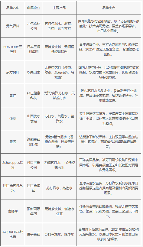 中國無糖飲料市場(chǎng)蓬勃發(fā)展,健康化、功能化趨勢(shì)顯著。元?dú)馍謶{借赤蘚糖醇?xì)馀菟I(lǐng)跑行業(yè),東方樹葉以純正無糖茶飲占據(jù)茶飲市場(chǎng)頭部地位。國際品牌三得利和怡泉依托百年工藝深耕功能性飲品,而名仁、依能等本土品牌則通過技術(shù)創(chuàng)新滿足多元場(chǎng)景需求。達(dá)能旗下靈汽和百事純水樂瞄準(zhǔn)年輕消費(fèi)群體,推出高顏值維生素氣泡水。屈臣氏、康師傅憑借強(qiáng)大渠道網(wǎng)絡(luò)覆蓋全場(chǎng)景消費(fèi)。這些品牌共同推動(dòng)無糖飲料向更健康、更美味的方向發(fā)展,滿足消費(fèi)者對(duì)品質(zhì)生活的追求。