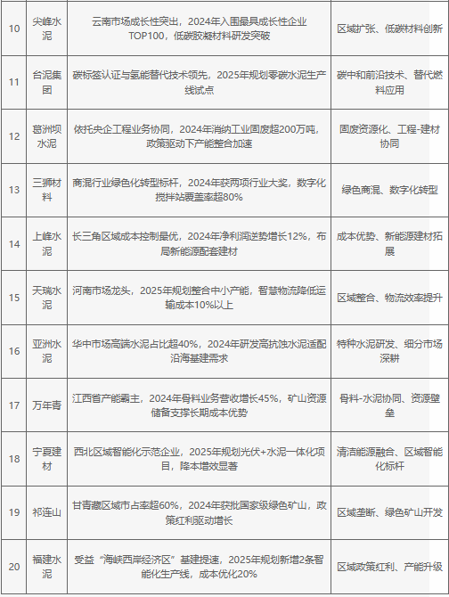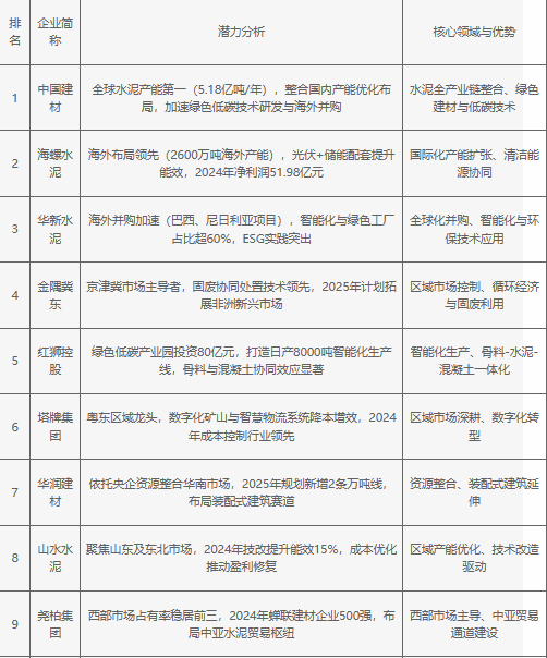 2025年中國(guó)水泥建材行業(yè)企業(yè)潛力分析