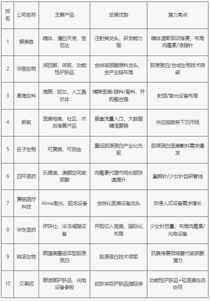 2025年中國醫(yī)美行業(yè)最具發(fā)展?jié)摿ζ髽I(yè)