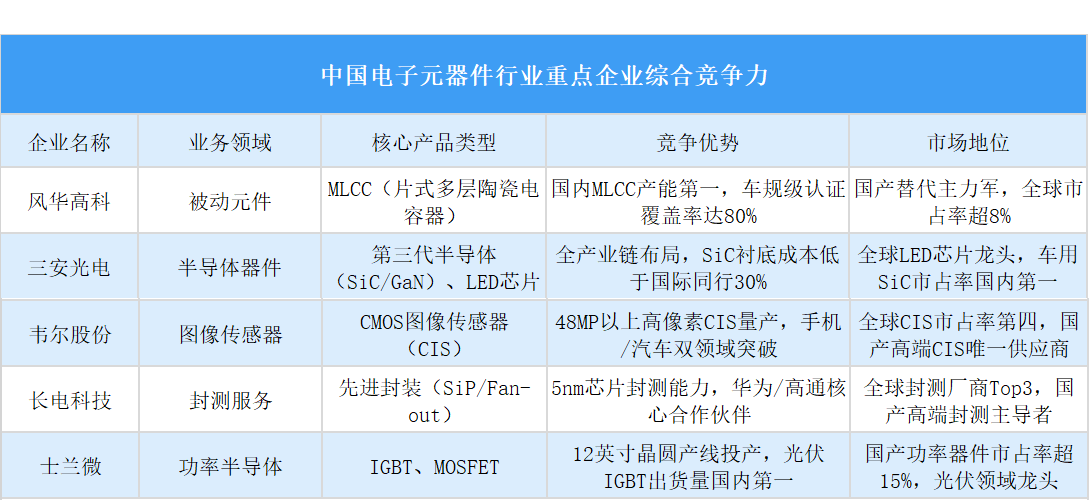 中國電子元器件企業(yè)競爭呈現(xiàn)出企業(yè)數(shù)量多、競爭激烈的特點。中國電子元器件企業(yè)在中低端領(lǐng)域有一定優(yōu)勢,但高端市場仍需突破。目前行業(yè)整合加速、頭部企業(yè)不斷提升競爭力,同時面臨著國產(chǎn)替代機遇與國際巨頭競爭壓力并存的局面。