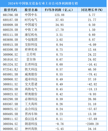 29家軌交設(shè)備行業(yè)上市公司公布了2024年經(jīng)營情況。其中,27家上市公司盈利,2家歸母凈利潤出現(xiàn)虧損。