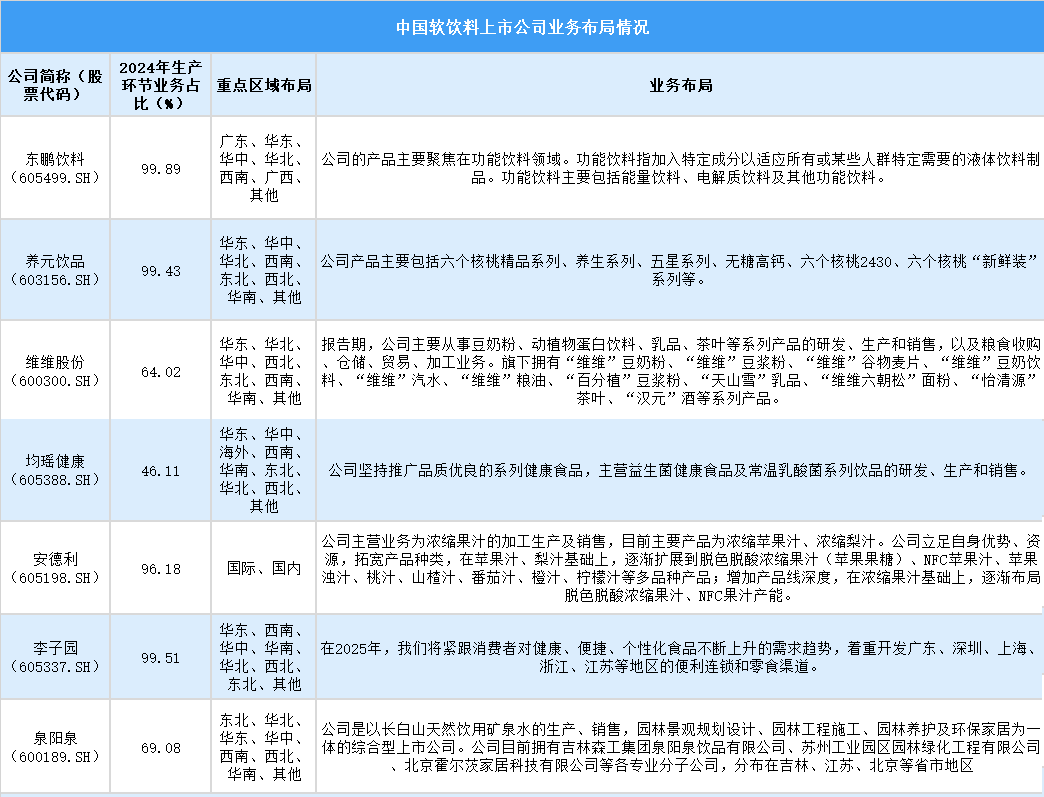 四、 中國軟飲料行業(yè)上市公司業(yè)務(wù)布局情況