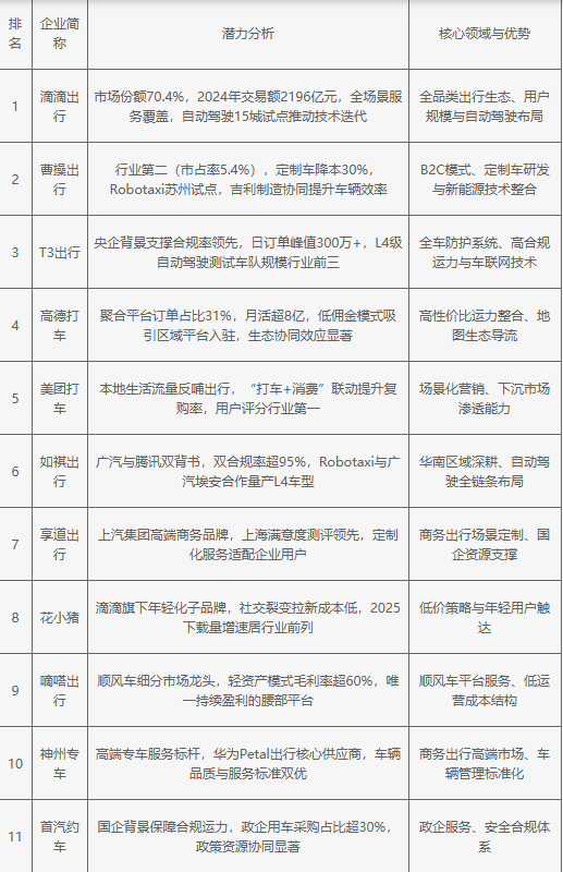 2025年中國(guó)網(wǎng)約車企業(yè)發(fā)展?jié)摿?/P>