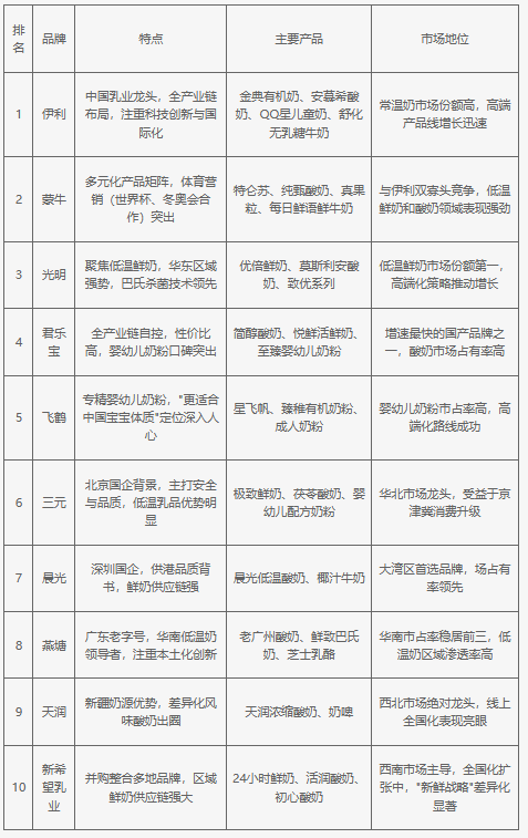 2025年中國最受消費者喜愛的十大乳制品品牌