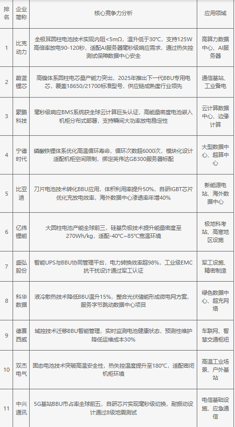 2025年中國(guó)(BBU)電池備份單元企業(yè)核心競(jìng)爭(zhēng)力