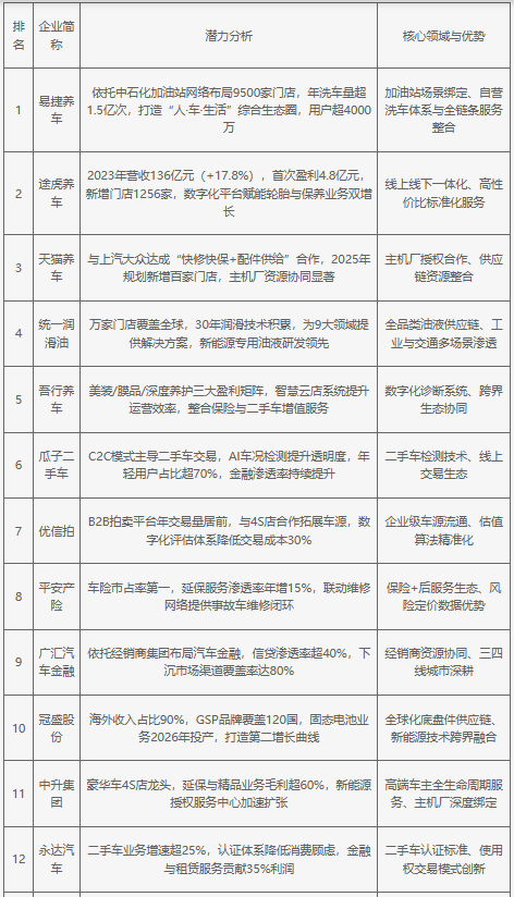 2025年中國汽車后市場企業(yè)發(fā)展?jié)摿?/P>