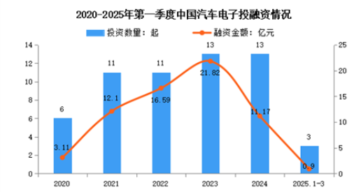 當(dāng)前中國(guó)汽車電子投融資市場(chǎng)呈現(xiàn)“高階自動(dòng)駕駛降溫、國(guó)產(chǎn)替代硬科技與車規(guī)芯片成新焦點(diǎn)”的格局。IT桔子數(shù)據(jù)顯示,2025年第一季度中國(guó)汽車電子已披露投資事件共3起,已披露融資金額約為0.9億元。