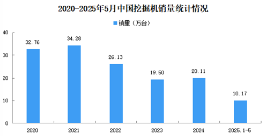 2025年1—5月,共銷售挖掘機(jī)101716臺(tái),同比增長(zhǎng)17.4%;其中國(guó)內(nèi)銷量57501臺(tái),同比增長(zhǎng)25.7%;出口44215臺(tái),同比增長(zhǎng)8.2%。