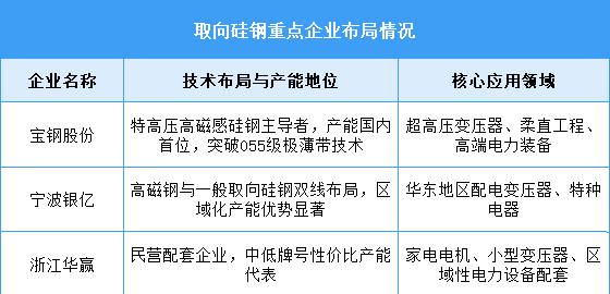 當(dāng)前取向硅鋼領(lǐng)域呈現(xiàn)"金字塔型"競(jìng)爭(zhēng)格局,頭部國(guó)企依托技術(shù)積淀主導(dǎo)高端市場(chǎng)(如特高壓、超薄帶),持續(xù)推動(dòng)磁損優(yōu)化與進(jìn)口替代;民營(yíng)企業(yè)則通過差異化定位(全產(chǎn)業(yè)鏈整合或區(qū)域化產(chǎn)能)搶占中端市場(chǎng)。全行業(yè)正加速向高磁感、低損耗技術(shù)迭代,應(yīng)用場(chǎng)景從傳統(tǒng)電力設(shè)備向新能源輸電、智能電網(wǎng)等方向延伸,但基礎(chǔ)材料工藝瓶頸與國(guó)際標(biāo)準(zhǔn)話語(yǔ)權(quán)仍是本土企業(yè)共同面臨的挑戰(zhàn)。