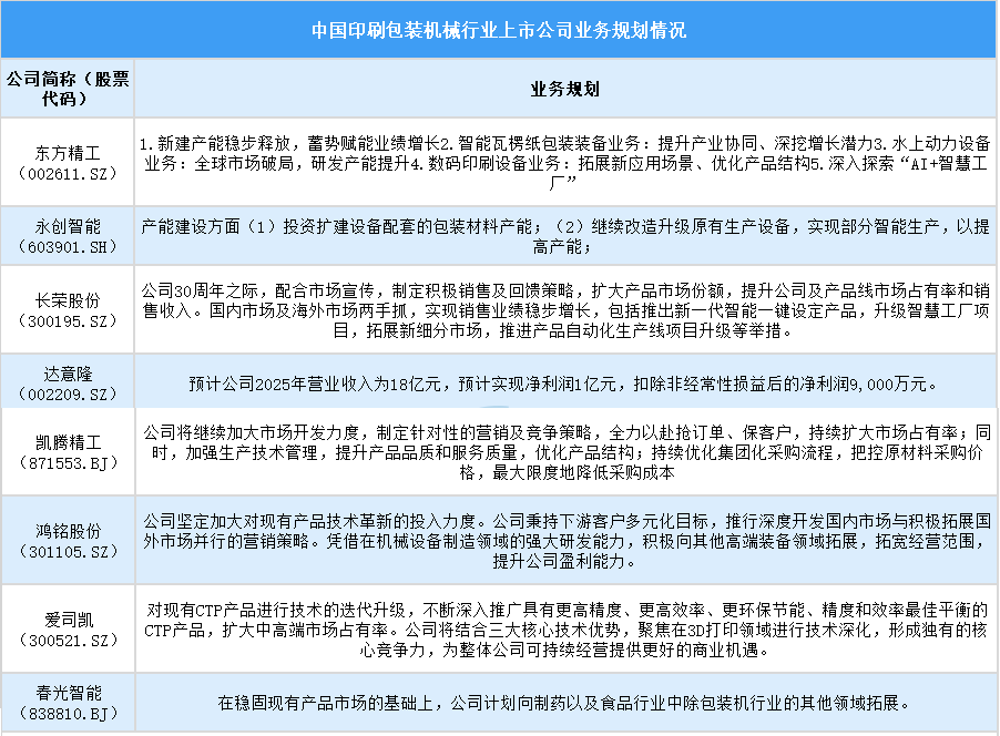 五、 中國(guó)印刷包裝機(jī)械行業(yè)上市公司業(yè)務(wù)規(guī)劃情況
