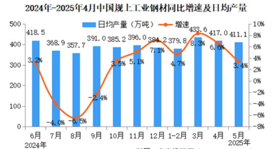 分產(chǎn)品看,5月份,規(guī)模以上工業(yè)623種產(chǎn)品中有326種產(chǎn)品產(chǎn)量同比增長(zhǎng)。其中,鋼材12743萬(wàn)噸,同比增長(zhǎng)3.4%;水泥16500萬(wàn)噸,下降8.1%;十種有色金屬683萬(wàn)噸,增長(zhǎng)2.9%;乙烯303萬(wàn)噸,增長(zhǎng)14.4%;汽車(chē)264.2萬(wàn)輛,增長(zhǎng)11.3%,其中新能源汽車(chē)124.5萬(wàn)輛,增長(zhǎng)31.7%;發(fā)電量7378億千瓦時(shí),增長(zhǎng)0.5%;原油加工量5911萬(wàn)噸,下降1.8%。
