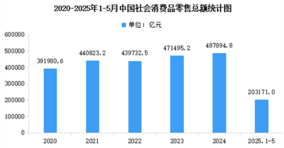 5月份,社會消費品零售總額41326億元,同比增長6.4%。其中,除汽車以外的消費品零售額37316億元,增長7.0%。1—5月份,社會消費品零售總額203171億元,增長5.0%。其中,除汽車以外的消費品零售額184324億元,增長5.6%。