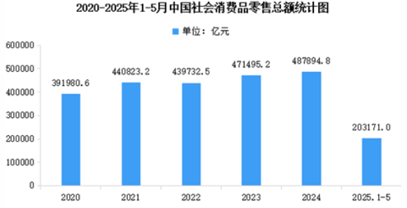 按消費(fèi)類型分,5月份,商品零售額36748億元,同比增長(zhǎng)6.5%;餐飲收入4578億元,增長(zhǎng)5.9%。1—5月份,商品零售額180398億元,增長(zhǎng)5.1%;餐飲收入22773億元,增長(zhǎng)5.0%。