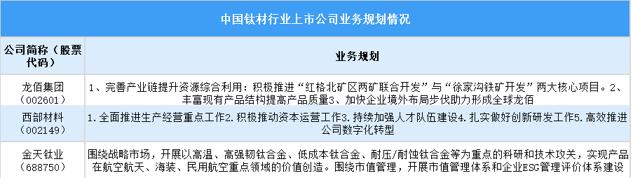 五、 中國(guó)鈦材行業(yè)上市公司業(yè)務(wù)規(guī)劃情況