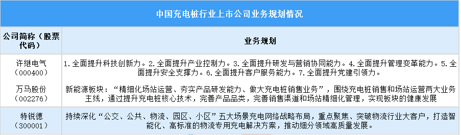 五、 中國充電樁行業(yè)上市公司業(yè)務(wù)規(guī)劃情況