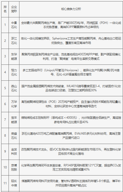 2025年中國聚丙烯行業(yè)重點企業(yè)核心競爭力